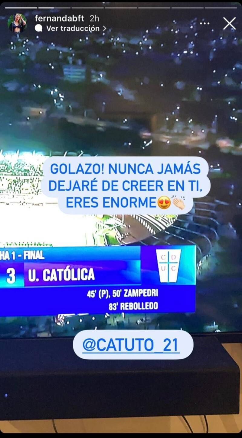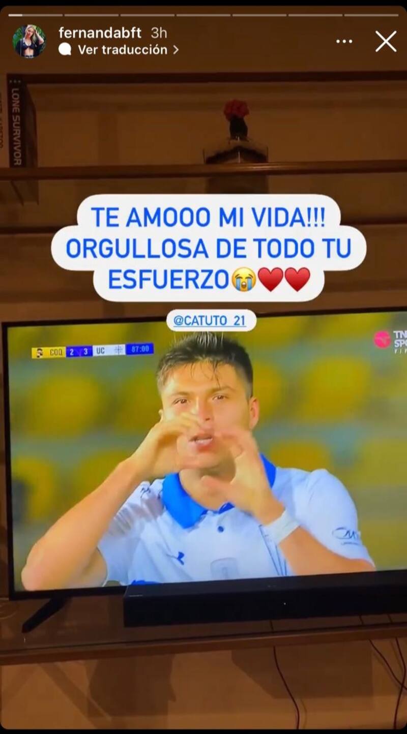 Después, la joven compartió otra imagen donde escribió: "¡Golazo! nunca jamás dejaré de creer en ti. Eres enorme", sobre otra captura de la televisión donde se ve el minuto en el que "Catuto" anotó.