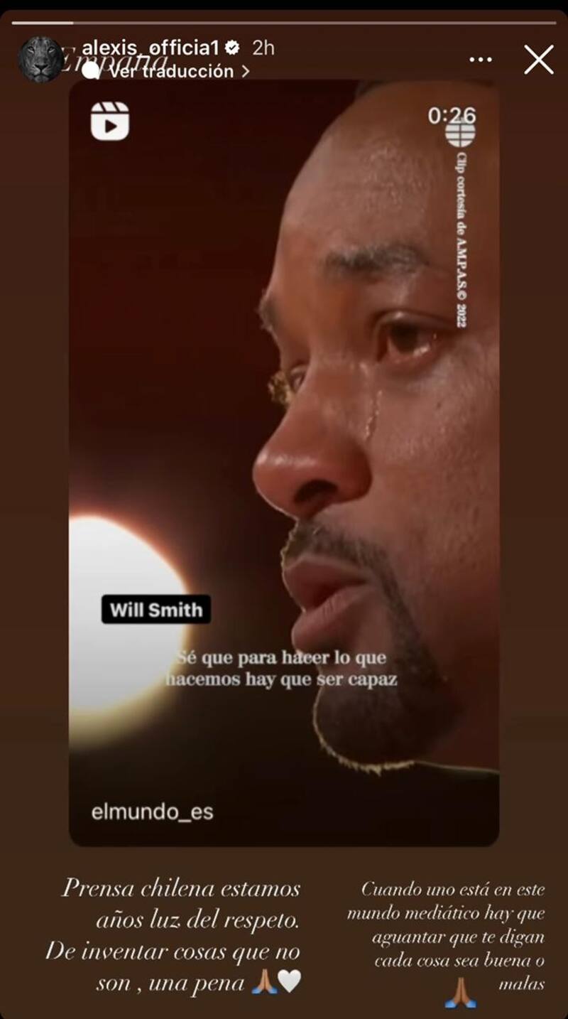 El tocopillano utilizó un video en donde el actor Will Smith realizaba una interesante reflexión tras la bullada polémica donde estuvo envuelto en las últimas horas. En el mencionado video, Smith señalaba en su discurso tras ganar el Oscar a Mejor Actor, que "para hacer lo que hacemos hay que ser capaz de soportar las faltas de respeto, que la gente diga locuras de ti y sonreír y fingir que todo está bien".