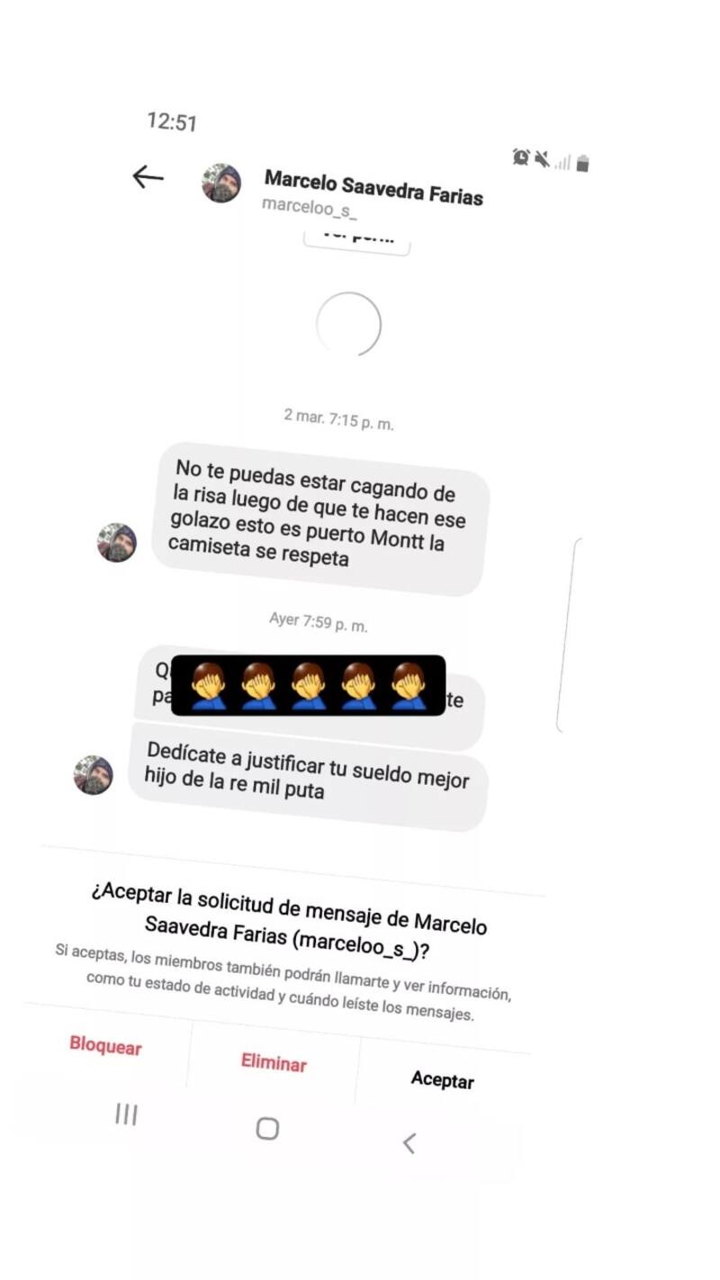 Pero, dicha foto fue duramente criticada por los fanáticos de Puerto Montt quienes repudiaron la acción de Viana y el arquero denunció en sus historias de Instagram las amenazas que recibió por parte de los "choros" de redes sociales por la instantánea que se tomó junto a sus ex compañeros porteños.