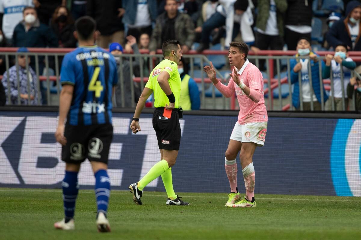 Universidad Católica se quedó con un jugador menos a los 48 minutos por la expulsión del delantero Diego Valencia, quien entró con una plancha de manera desmedida contra el jugador de Huachipato Claudio Sepúlveda y el árbitro Cristian Garay no dudó mostrar la tarjeta roja.