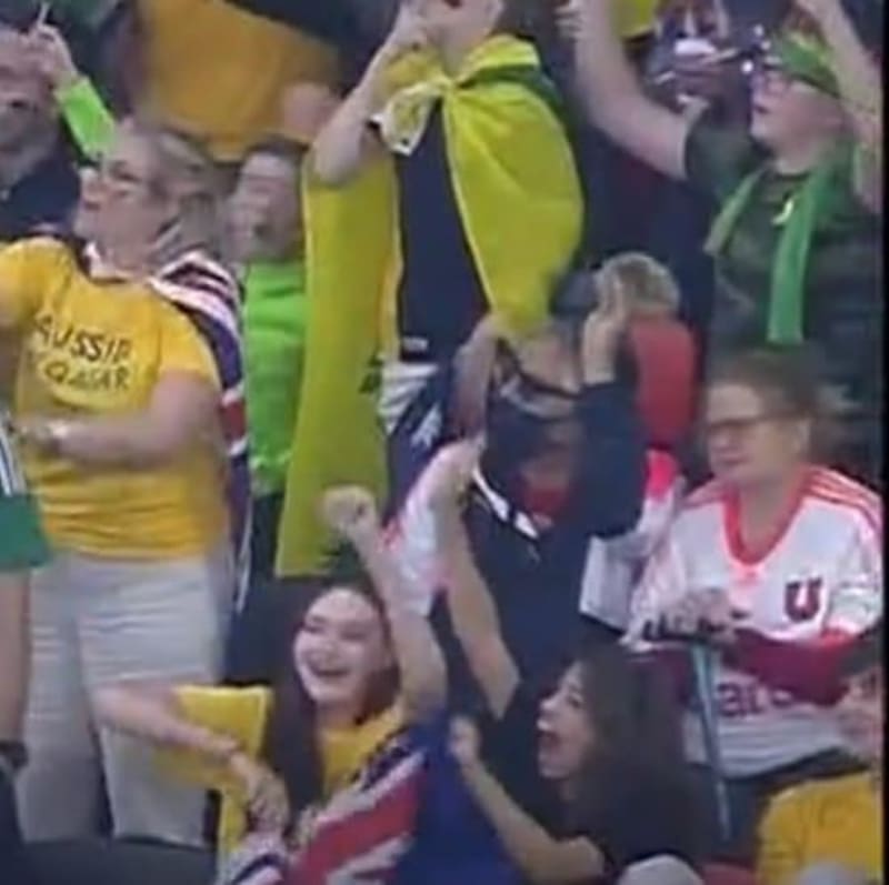 Todo fue alegría en las tribunas que tenían hinchas del país de los canguros y los koalas, y entre toda esa gente destacó una mujer que, sorprendentemente, vestía la camiseta de la Universidad de Chile.