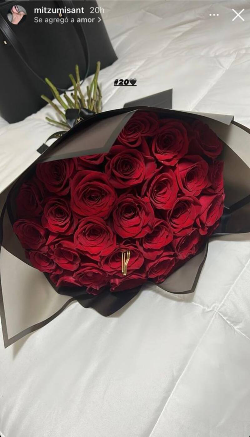 También se puede ver cómo el mediocampista le regaló un ramo de rosas rojas, que ella inmediatamente sube a su Instagram.