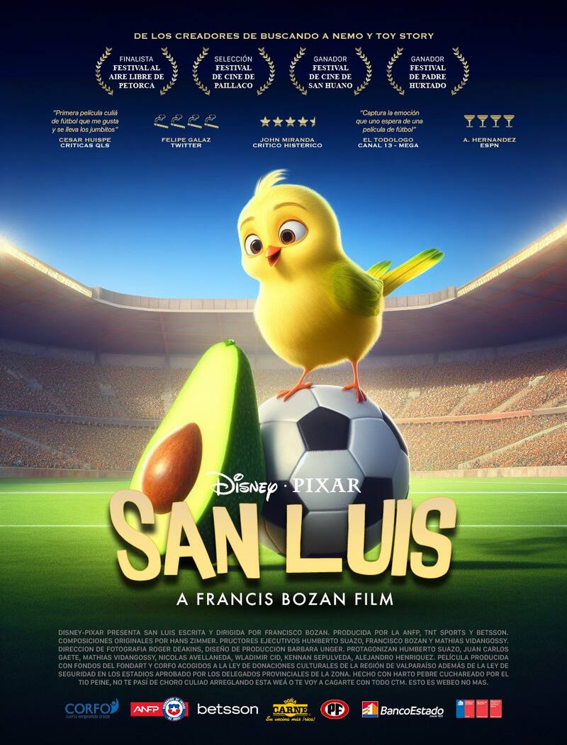 Un canario posado sobre una pelota de fútbol acompañado por una palta. Todo con la leyenda “San Luis, una película por Francisco Bozán”... Así de hilarantes fueron los resultados cuando se sometieron a los clubes chilenos a la Inteligencia Artificial, para descubrir cómo se verían si es que fueran películas de Pixar.