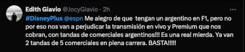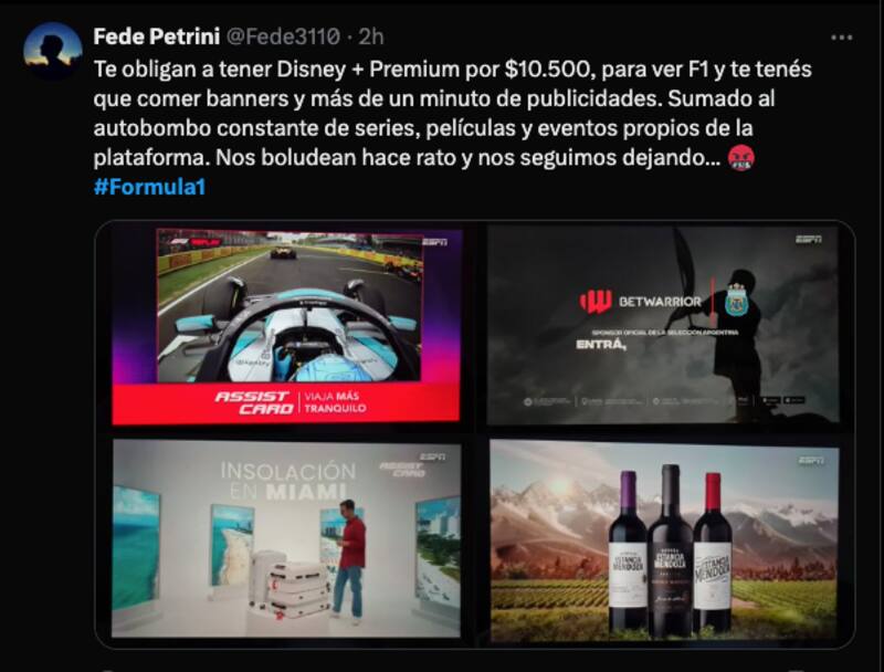 Además, muchas personas reclamaron que gran parte de los anuncios correspondían a publicidad argentina, demostrando aun más su descontento y ligándolo a la presencia de Franco Colapinto en la Fórmula 1.