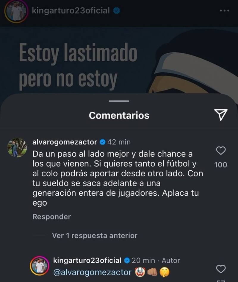Arturo Vidal no se quedó callado y respondió con tres emojis: un payaso, un puño y un silencio. Posteriormente, varios hinchas le encontraron la razón a Álvaro Gómez y apuntaron contra el volante.