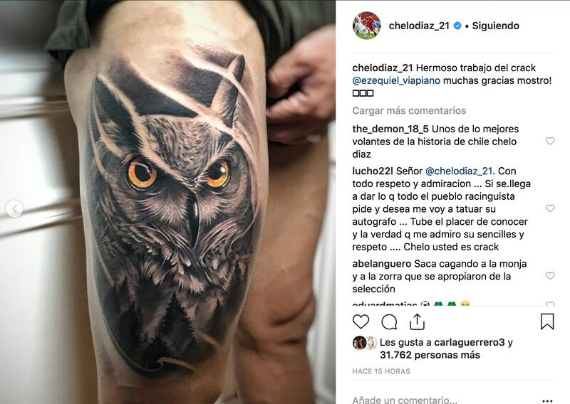 El mediocampista de la Academia subió una foto y un video a su cuenta de Instagram con su nuevo tatuaje: La cara de un búho en su pierna, que podría suponer que es dedicado a su cariño por la U.