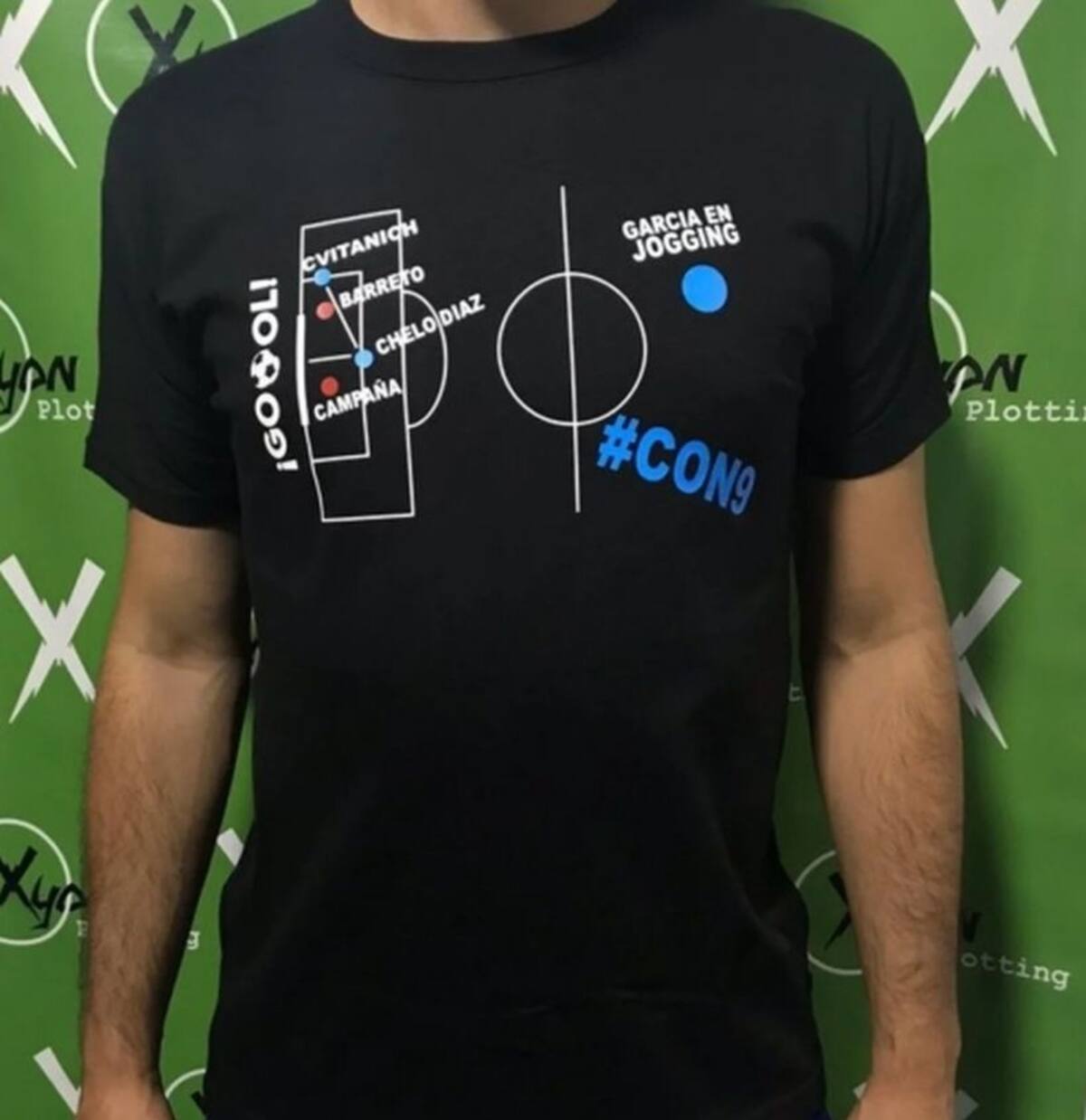 La remera detalla en qué parte de la cancha se encontraba cada jugador al momento de la acción, además de recrear la jugada con flechas que muestran la circulación del balón desde Darío Cvitanich, hasta Barreto, Campaña y finalmente Marcelo Díaz.
