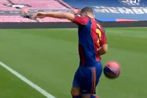 El nuevo jugador del Barcelona, Sergiño Dest, fue presentado oficialmente en el Camp Nou ante los medios. Y como ya es una tradición, el estadounidense se lució con el balón en su presentación, dejando un genial lujo que destacaron las redes sociales del club catalán.