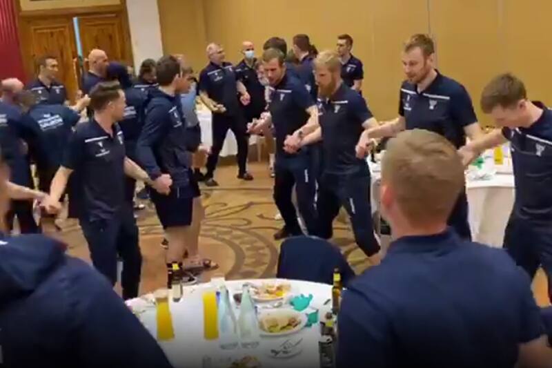 Tras la histórica clasificación, el conjunto del archipiélago celebró con todo el histórico logro y en la cena, el cuerpo técnico, directivos y jugadores se unieron en un particular baile.