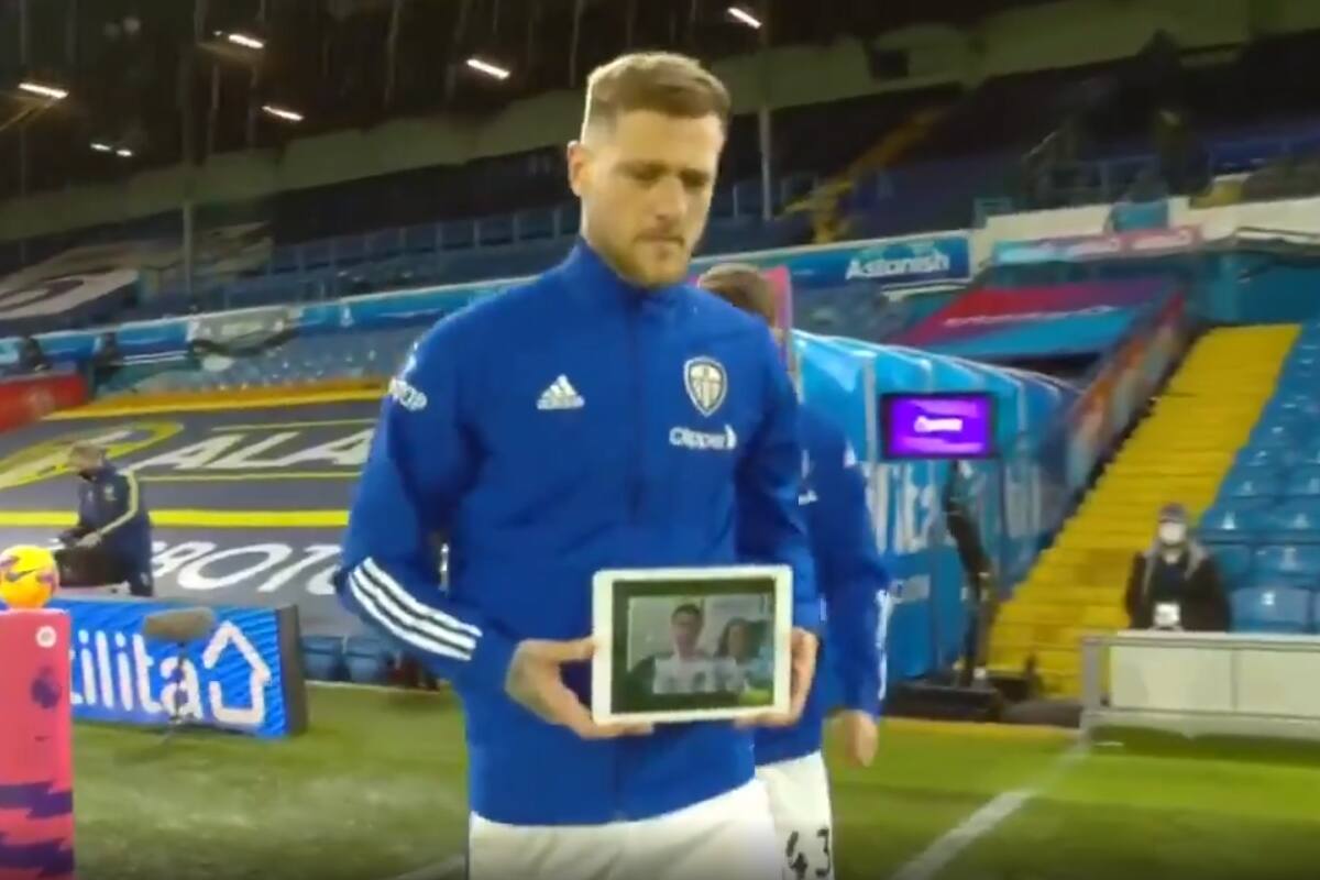 Un bonito momento se vivió en la previa del duelo entre Leeds United y Arsenal, cuando el capitán del Leeds United salió al campo con una tablet.