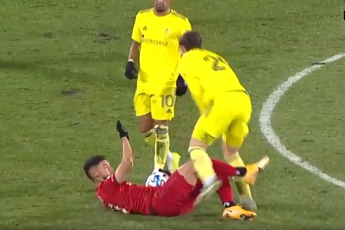 El estadounidense recibió una dura patada por parte de Jonathan Osorio, que, al caer, pasó a llevar la humanidad del jugador del Nashville.