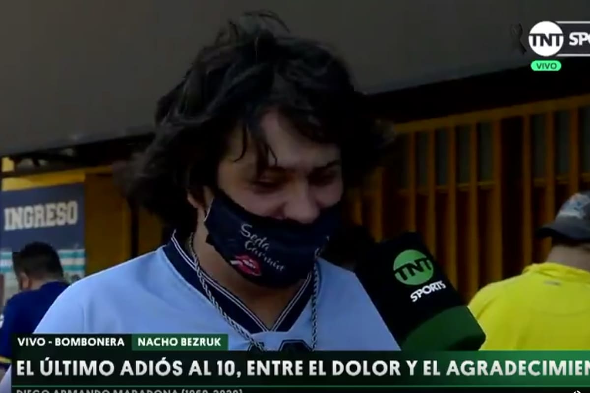 "Se pinchó la pelota, a los argentinos y a todo el mundo. Se fue Maradona, loco. Se fue cultura, historia, deporte...No era un tipo que solo corría por amor a la pelota o por nosotros. Ese tipo era lo más grande que hay, después de mi vieja" fue la emocionante frase que dejó el hincha.