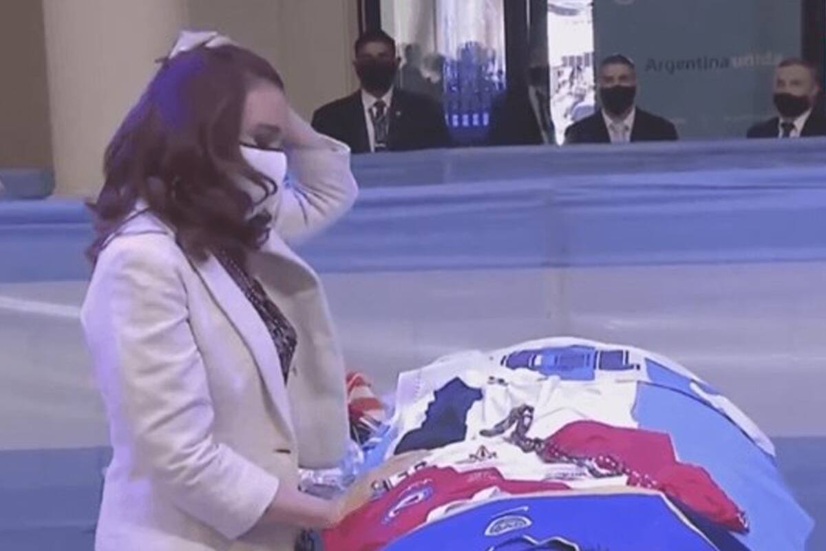 La expresidenta llegó a Casa Rosada con un rosario para dejarlo encima del féretro, manteniéndose poco menos de un minuto acompañando los restos mortales de Diego Maradona, marcando una de las imágenes que quedará en el recuerdo de los funerales del crack argentino.