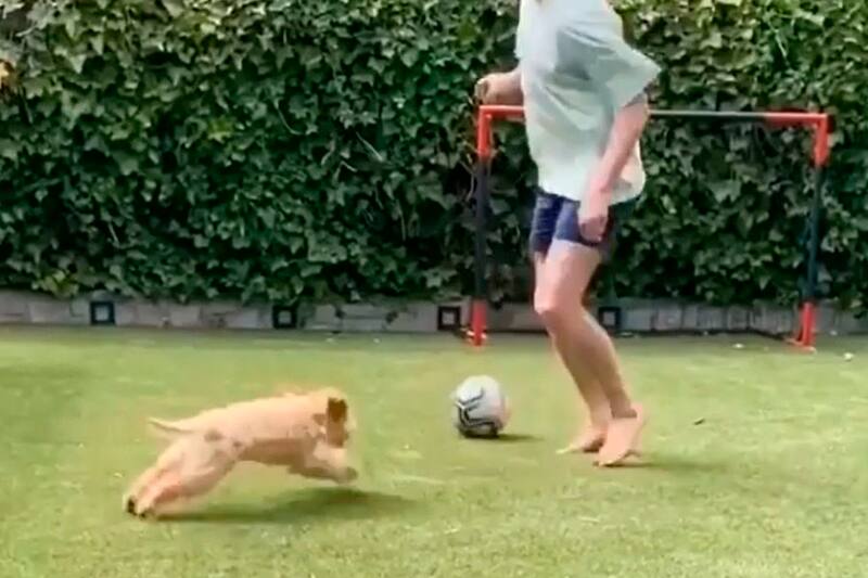 El volante de Barcelona, Frenkie de Jong, aprovechó sus momentos de ocio para jugar con su pequeño perro. El volante holandés volvió a los entrenamientos junto al plantel de Barcelona para retomar la liga española el 8 de junio.