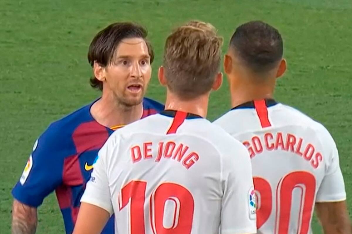 Casi llegando al final de la primera etapa, un momento de tensión se vivió entre los jugadores de Barcelona y Sevilla, cuando Lionel Messi empujó a Diego Carlos luego de una falta sobre Luis Suárez.
