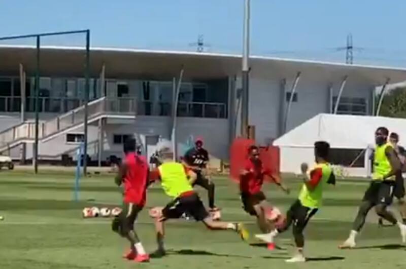 El delantero francés clavó el balón a un ángulo de De Gea en la práctica de los "Diablos Rojos" que se sigue preparando de cara al retorno de la Premier League.