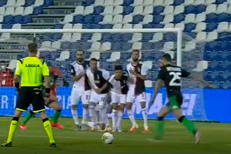 Domenico Berardi anotó un golazo de tiro libre, que significó el empate parcial de Sassuolo ante Juventus tras ir perdiendo por 2 goles a 0.
