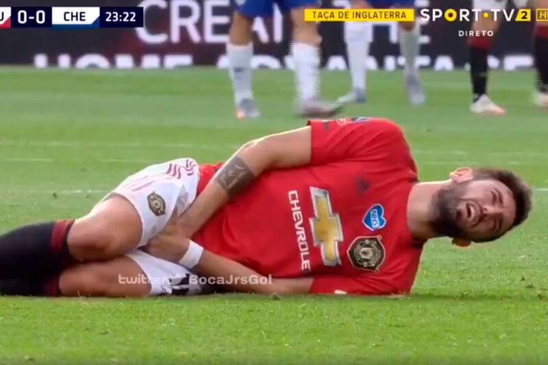 Un doloroso momento vivió Bruno Fernandes en el duelo ante Chelsea, cuando César Azpilicueta le pegó en la zona baja al portugués.