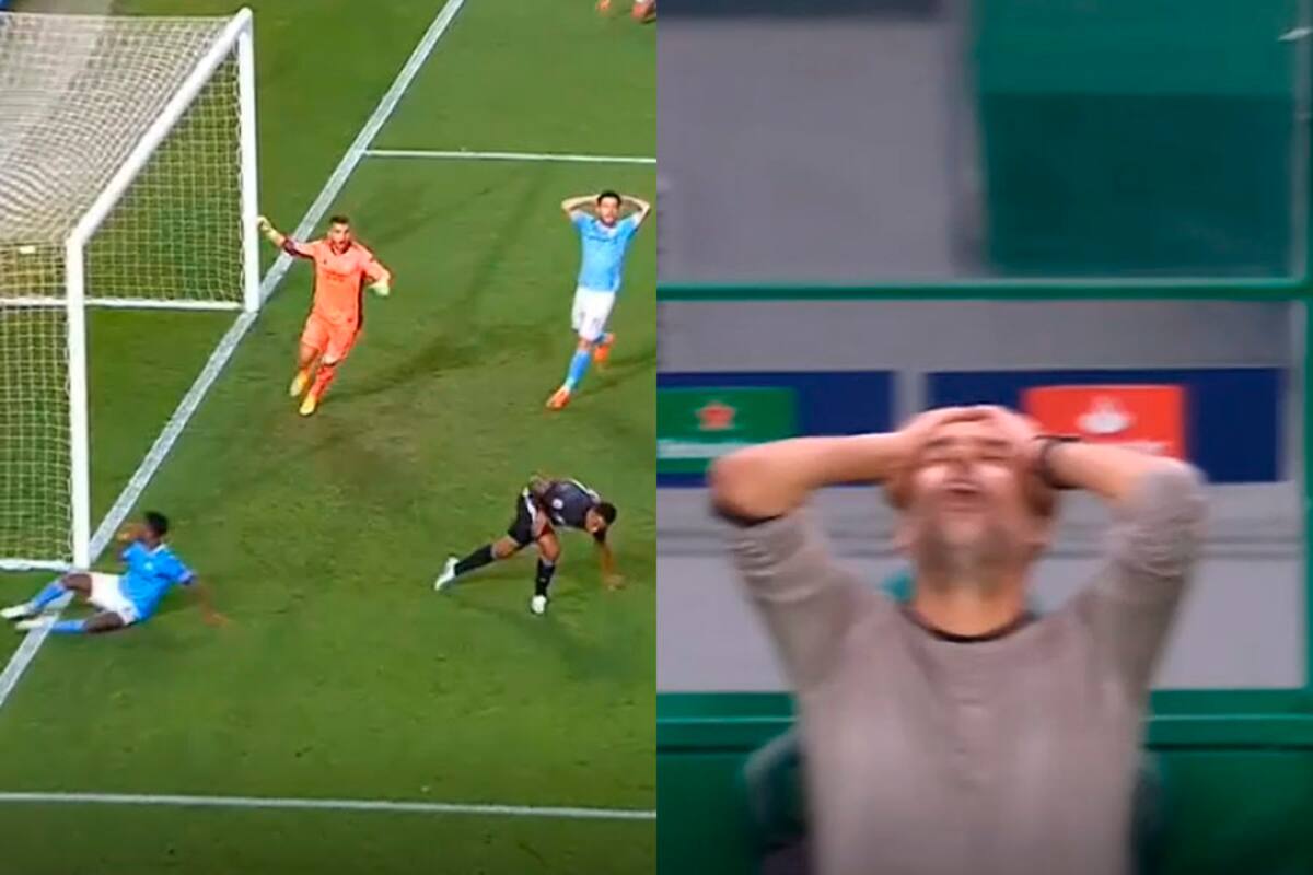 No se podía creer, a 5 minutos del final del partido y cuando el Manchester City estaba abajo por 2 goles a 1, Raheem Sterling perdió la chance más clara para igualar el marcador, errando increíblemente debajo del arco.