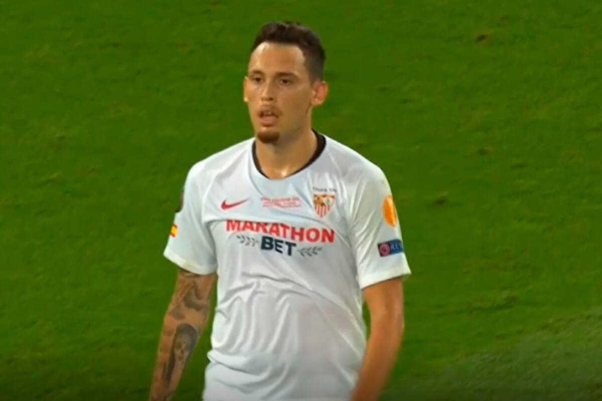 Finalizando el primer tiempo de la final de la Europa League, Samir Handanovic le ahogó el grito de gol al argentino Lucas Ocampos.