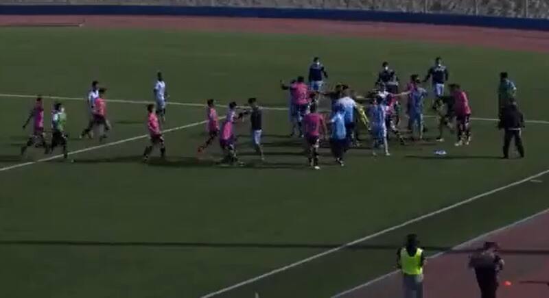 En ese instante, un jugador visitante corrió hasta el fondo del estadio para ir a buscar el balón, donde se cruzó con los suplentes de Mejillones y comenzó una discusión que fue creciendo y terminó con una batalla campal entre ambos planteles, que tuvo incluso a hinchas que ingresaron a la cancha para golpear a los futbolistas de Lota Schwager, lo que quedó registrado en la transmisión del canal Mejillones TV.