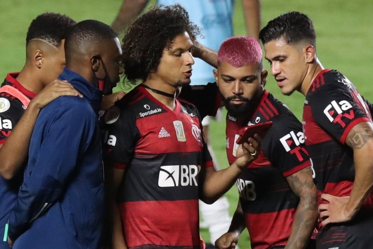 Puros nervios. Luego de la derrota del Flamengo ante Sao Paulo por la última fecha del Brasileirao, los jugadores del equipo de Río de Janeiro tuvieron que esperar como terminaba el partido entre Inter y Corinthians en Porto Alegre con un celular, duelo que aún faltaba por definirse.