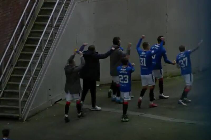 Y tras el título, todo fue alegría para Rangers, que no se olvidaron de sus hinchas, quienes se acercaron a las afueras del Ibrox Stadium para alentar a sus jugadores, haciéndolos parte de los festejos tras la victoria que significó el tan ansiado título, tras una década de sequía.