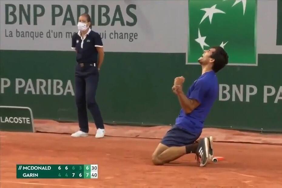 Cristian Garín (23° de la ATP) logró una maratónica victoria en la segunda ronda de Roland Garros al vencer al estadounidense Mackenzie McDonald (119°) por 4-6, 4-6, 7-6 (7), 6-3 y 8-6, logrando acceder al tercer partido en el Grand Slam que se juega en París, Francia.