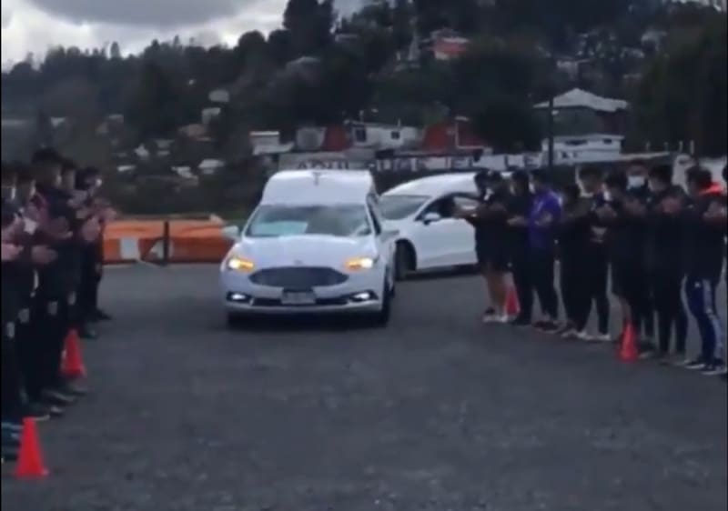 Los futbolistas del plantel del "León de Collao" organizaron un pasillo para recibir la carrosa que transportaba al ex arquero y le dedicaron un sinfín de aplausos cuando pasó por el medio.