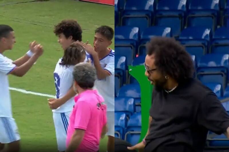 El histórico lateral izquierdo del Real Madrid, Marcelo no solo dejó su legado tras 16 años vistiendo la camiseta "Merengue", también su hijo Enzo ya hace de las suyas en la capital española. En un campeonato de proyección denominado "La Liga Promises" el hijo del brasileño se luce con sus goles y así quedó reflejado en el duelo ante Inter Miami con un notable tanto de cabeza que celebró al más puro estilo de Cristiano Ronaldo, festejo que fue replicado por el orgulloso papá.