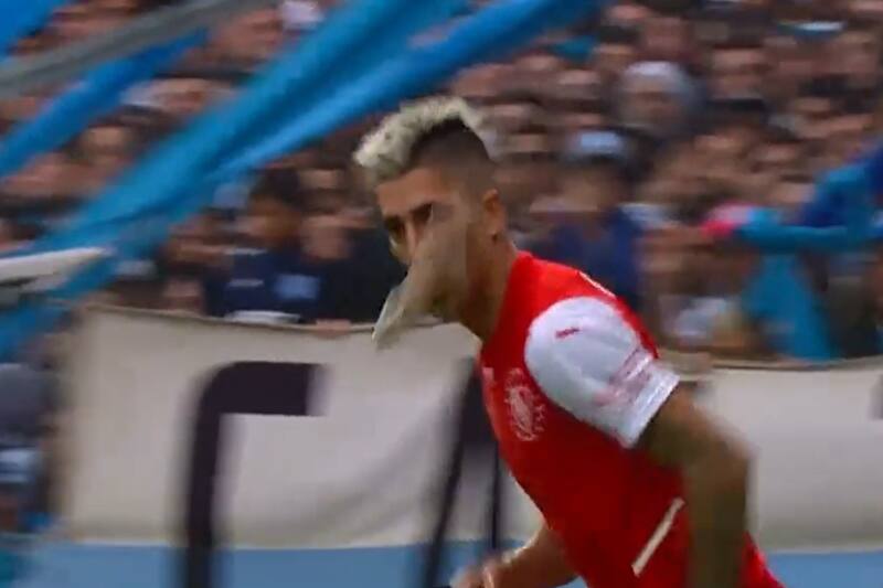 Sin embargo, más allá del tanto de gran factura, otro episodió acaparó la atención en el partido. En una jugada, el delantero del "Rojo", Leandro Fernández, recibió un curioso objeto que a primera vista parece ser un pescado en el rostro. El golpe dejó seriamente afectado al jugador que debió ser atendido al interior de la cancha.