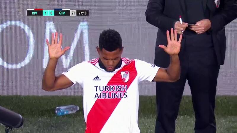 El colombiano Miguel Borja, recién llegado junto a Pablo Solari como refuerzo de River Plate, vivió su estreno con la camiseta "Millonaria" el jueves, entrando desde la banca en el triunfo sobre Gimnasia y Esgrima de La Plata. Sin embargo, fue lo que hizo antes de ingreso a la cancha lo que llamó la atención de muchos e incluso generó las burlas del polémico comentarista argentino Rodolfo "Gringo" Cingolani.