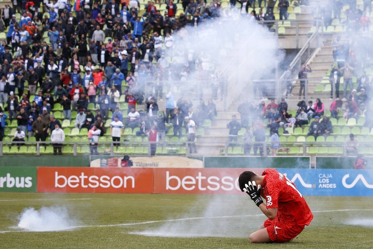 El Clásico Universitario de este miércoles quedará en la historia negra del fútbol chileno. Lo que se suponía sería el cierre de una emocionante serie de Copa Chile entre la UC y la U quedó en nada cuando antes de los seis minutos una bomba de ruido cayó a pocos metros del arquero azul Martín Parra, quien cayó al suelo y terminó siendo trasladado en camilla a un centro asistencial mientras el partido se suspendía.