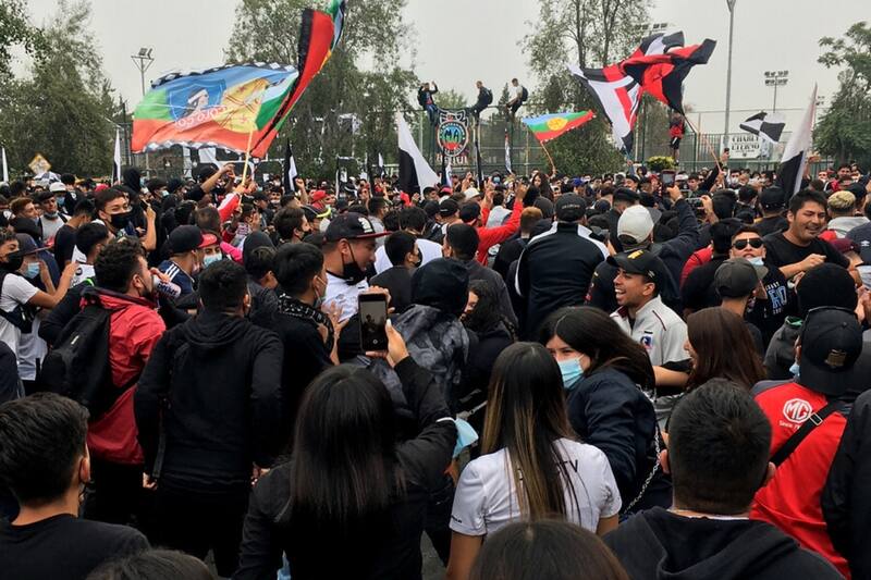 Hinchas de Colo Colo llegaron al Estadio Monumental cantando y alentando al equipo que en unas horas más partirá rumbo a Talca para un partido trascendental ante Universidad de Concepción a disputarse este miércoles a las 18:00 horas en un partido válido por la definición que entregará el tercer descendido a la Primera B.
