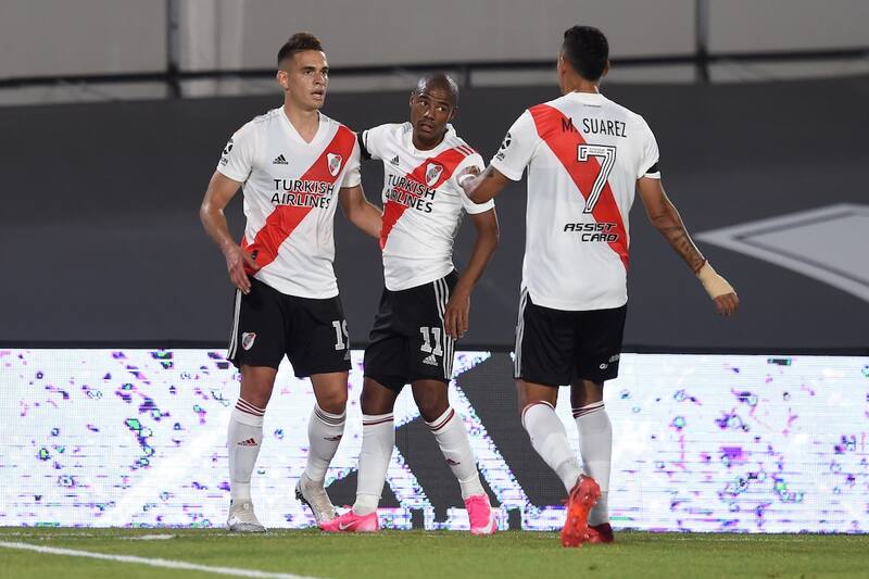 Luego de un tiro de esquina por el sector izquierdo, el zaguero formado en Palestino logró puntear un balón en área chica, el cual fue aprovechado por el atacante colombiano Rafael Santos Borré, quien abrió la cuenta en el remozado Estadio Monumental de Núñez al minuto 37.