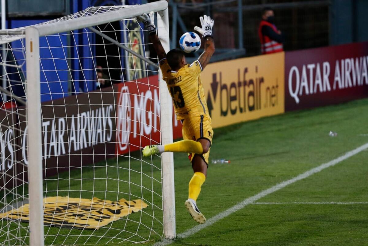 A los 12 minutos, el portero de los "pumas" evitó la apertura de la cuenta de los rojos tras taparle un penal al delantero argentino Leandro Garate.
