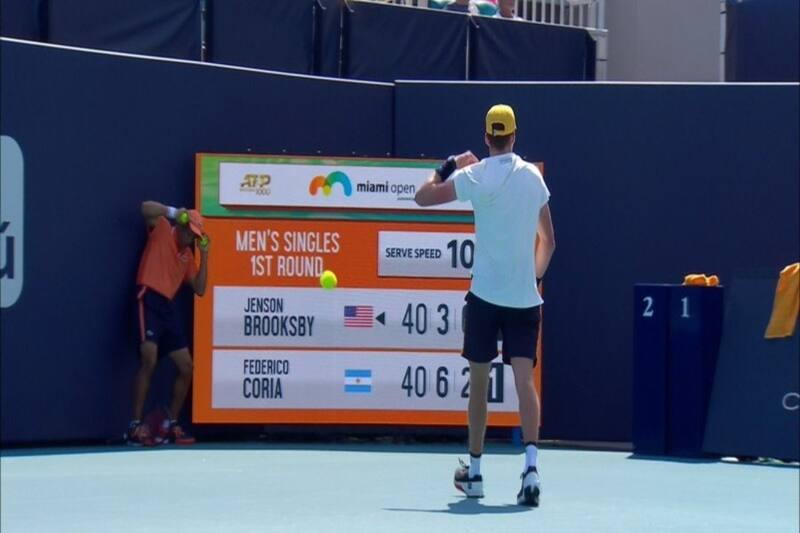 El estadounidense Jenson Brooksby (39 ATP) derrotó por parciales de 3-6, 6-2 y 6.3 al argentino, Federico Coria (60 ATP), en la primera ronda del Masters 1000 de Miami. El partido estuvo marcado por un momento que está dando la vuelta al mundo, pues luego de perder un punto en el tercer set, el tenista norteamericano lanzó lejos la raqueta y golpeó a un pasapelotas, lo que le provocó una penalización y, por consiguiente, el quiebre de servicio favorable al trasandino. Coria, incluso, solicitó la descalificación de su adversario.