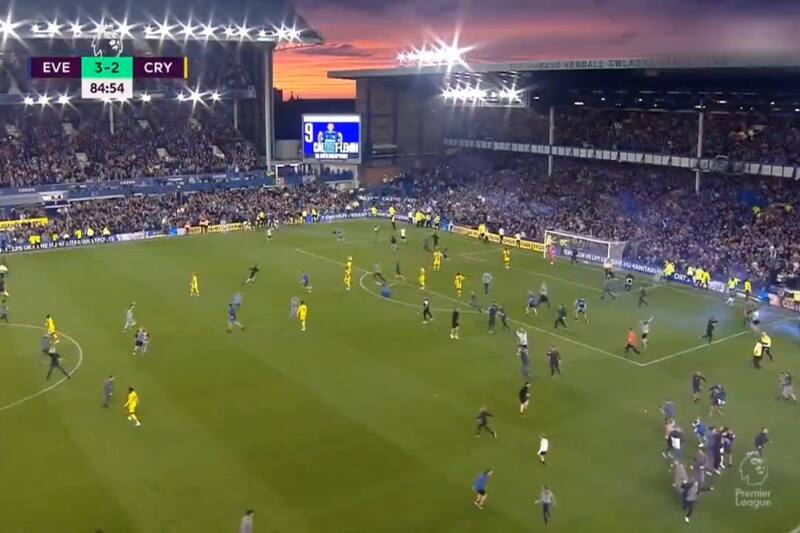 La locura se desató a los 85 minutos, cuando Dominic Calvert-Lewin anotó el tercer gol para los "Toffees", momento en que los hinchas invadieron el terreno de juego. Posteriormente el duelo pudo continuar y tras siete minutos de descuento llegó el pitazo final, donde ahí sí los fanáticos azules pudieron celebrar en la cancha junto a los pupilos de Frank Lampard.
