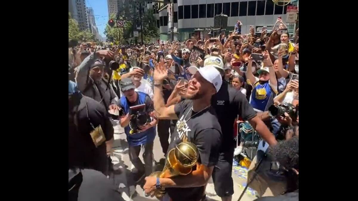 El pasado jueves se disputó el último partido de la final de la NBA donde los Golden State Warriors derrotaron a Boston Celtics por 103-90 para imponerse por 4 a 2 en la serie. Los de San Francisco no han parado con las celebraciones desde entonces y hoy tuvieron su tradicional "desfile de campeones", donde destacó la figura de Stephen Curry, a quien ya no le quedaban manos para sostener tantos trofeos luego de ser elegido por primera vez en su destacada carrera como el MVP de las finales.