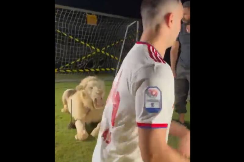 Una insólita imagen llega desde el fútbol de los Emiratos Árabes Unidos, donde los propietarios del Sharjah FC no hallaron nada mejor que presentar a su nueva figura, el defensa griego Kostas Manolas, con la presencia de un león, animal que con un fuerte e inesperado rugido asustó a la ex figura del Nápoli y la Roma, mismo que brilló en la Champions League 2017-2018 anotado el gol que eliminó al Barcelona en cuartos de final.
